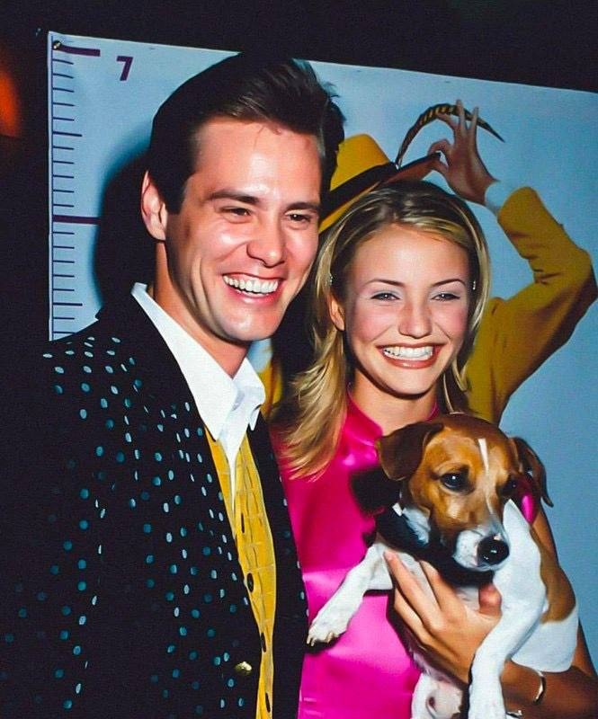 Джим Керри и Кэмерон Диаз на съёмках фильма «Маска», 1994 г.