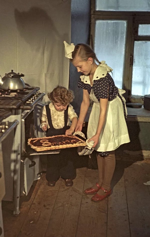 Дети испекли пирог в подарок маме на 8 Марта. 1958 год. Фотограф: А.Аджанов