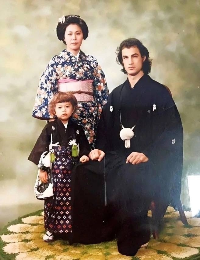 Стивен Сигал со своей семьей в 1979 году. На фотографии будущий знаменитый актёр, его первая жена Мияко Фудзитани и их сын Кентаро. Сигал в возрасте 22 лет получил 1-й дан по айкидо, после чего женился на японке, дочери мастера боевого искусства, которая в то время имела уже 2-й дан. Сигал стал первым иностранцем, получившим право открыть додзё (зал для тренировок) в Японии, после чего уехал развивать айкидо в США.