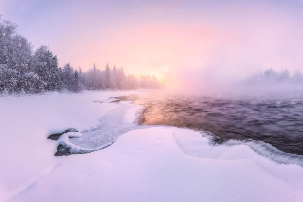 Морозный вечер и незамерзающая река