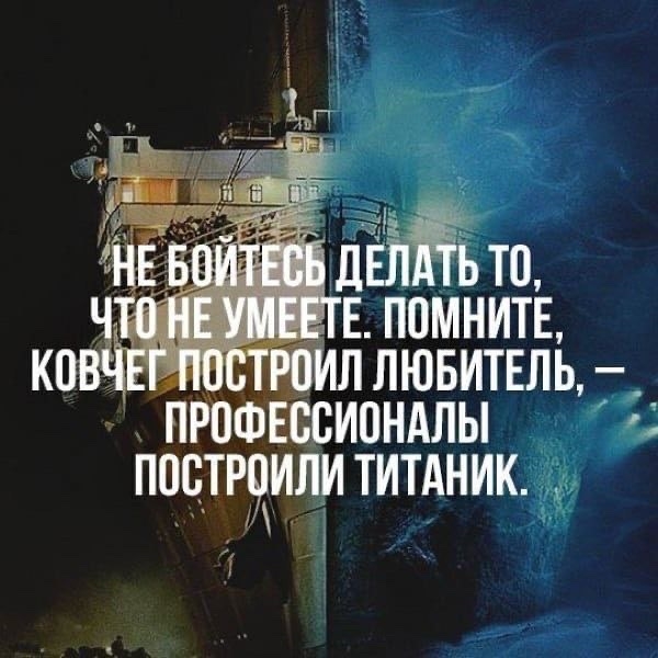Не бойтесь делать то, что не умеете. Помните, ковчег построил любитель, профессионалы построили Титаник