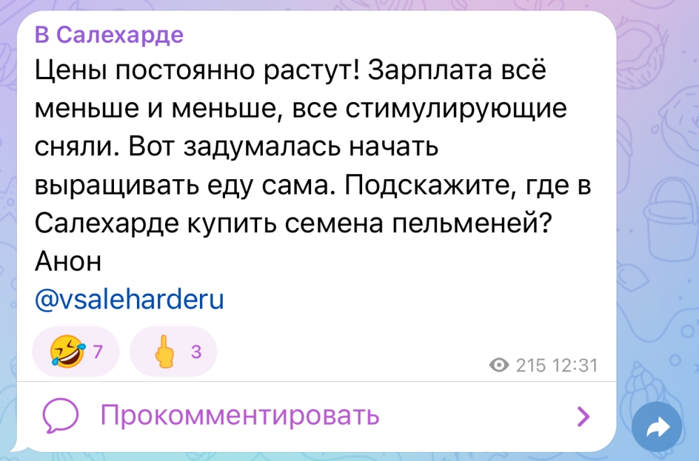 Цены постоянно растут! Зарплата всё меньше и меньше, все стимулирующие сняли. Вот задумалась начать выращивать еду сама. Подскажите, где в Салехарде купить семена пельменей? Анон