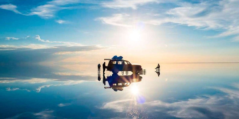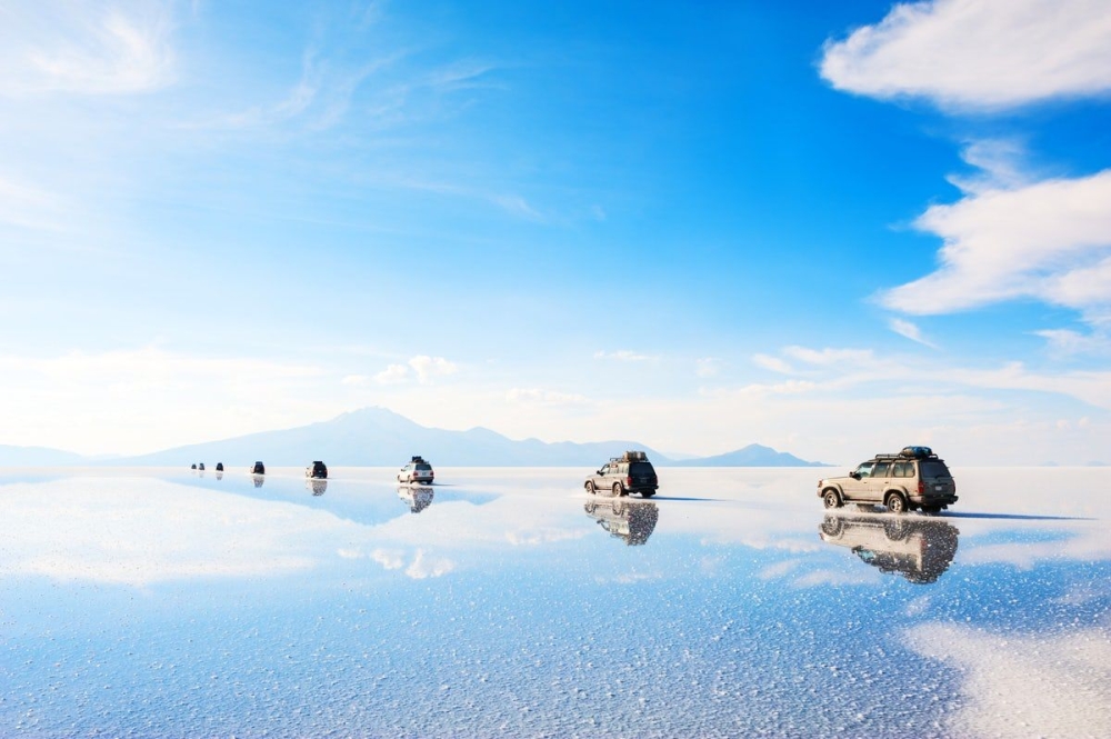 Солончак Уюни в Боливии, высохшее солёное озеро находится на высоте около 3650 м над уровнем моря.