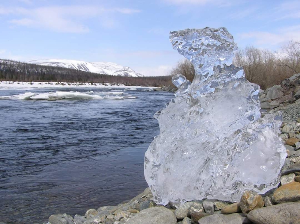 Река Собь в посёлке Харп. Вид на гору Рай-Из