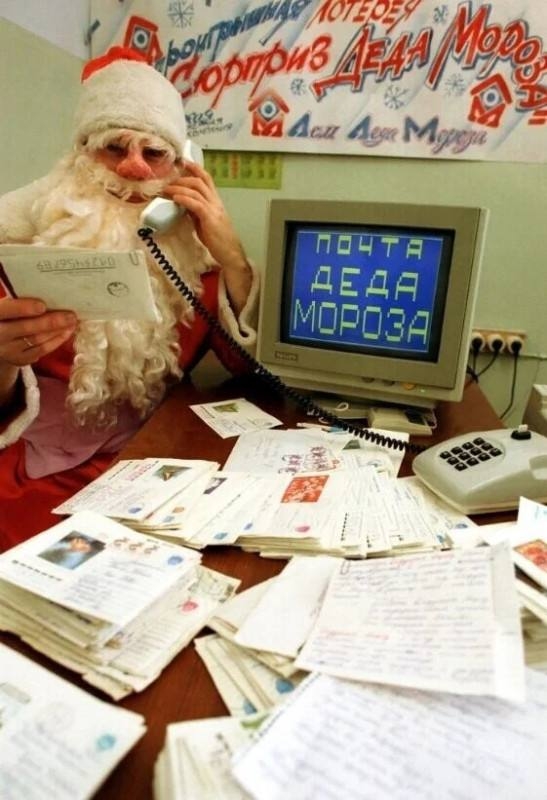 Тысячи писем, адресованных Деду Морозу, прибывают в предновогодние дни в Архангельск. декабрь 1991 года.